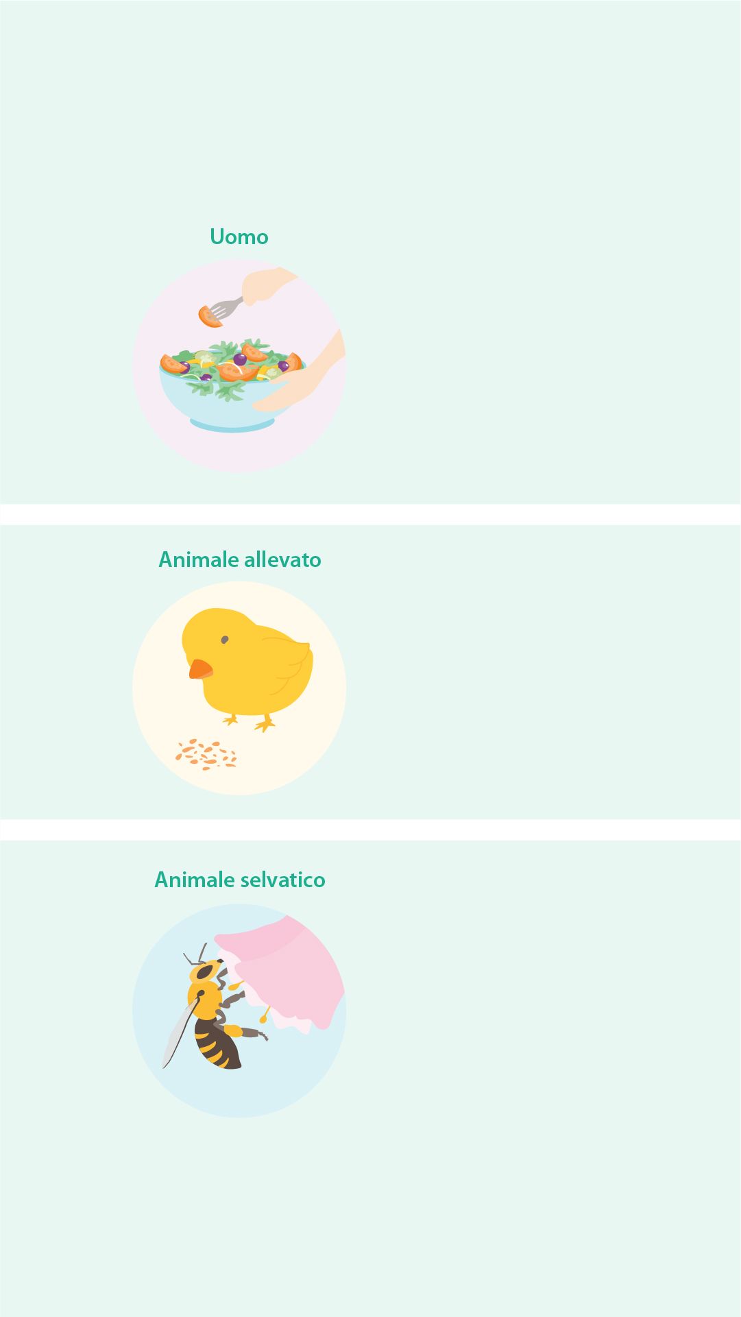 A volte ciò può influire sugli animali allevati come polli e maiali, sugli animali selvatici come uccelli e insetti e anche sull’uomo.