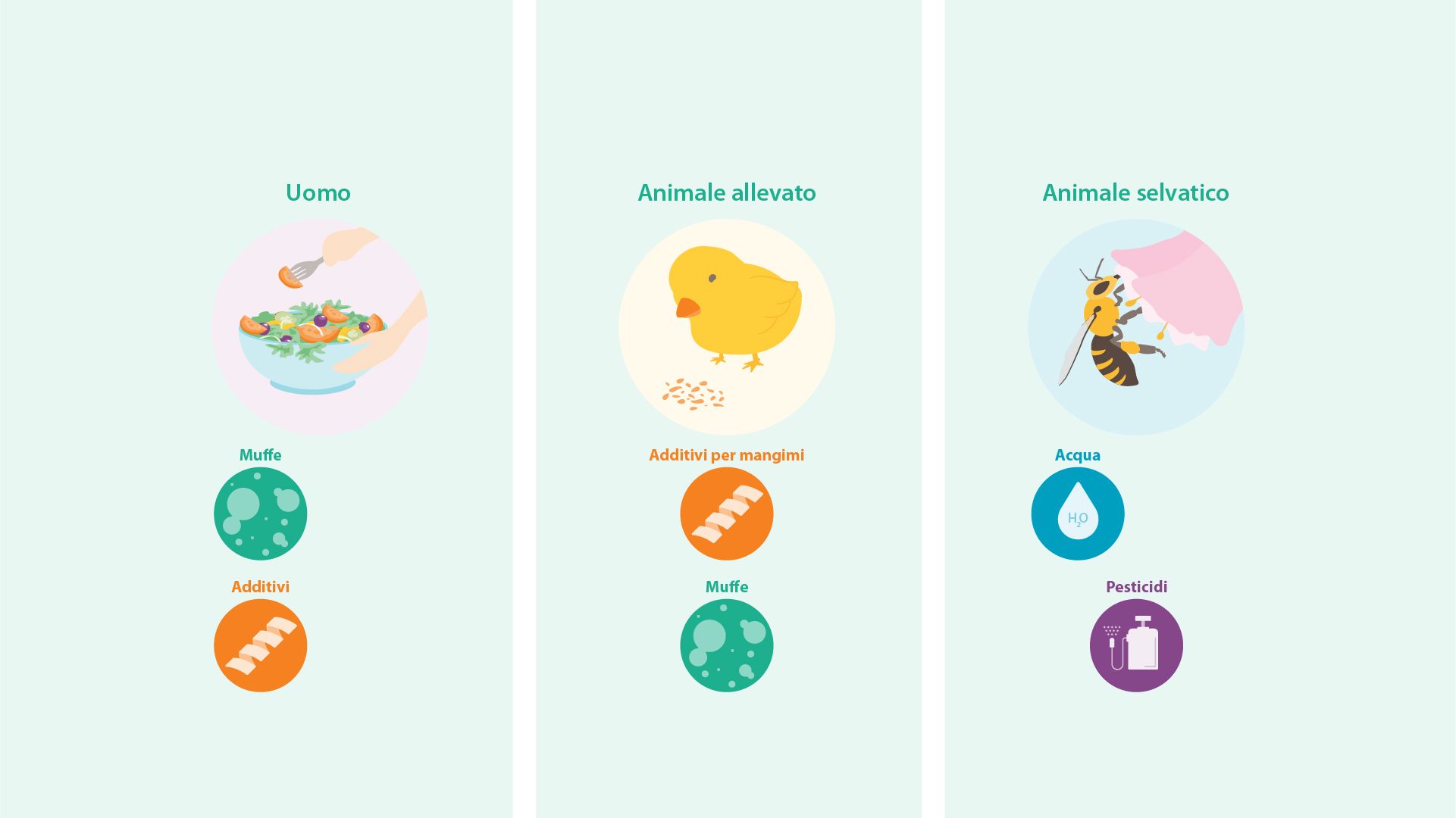 Persone, animali allevati e animali selvatici entrano in contatto con diverse sostanze chimiche tramite la dieta.